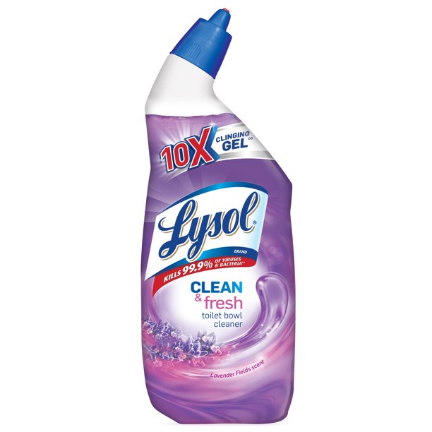 Lysol Toilet Bowl Cleaner cleans and disinfects toilets. The thick formula sticks to the bowl for better cleaning. Lysol liquid toilet bowl cleaner kills 99.9% of viruses & bacteria with complete clean power. The angled bottle targets hard to reach areas, including under the rim, to leave your entire toilet bowl sparkling clean, deodorized and disinfected.